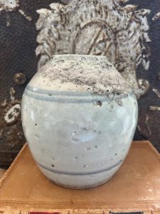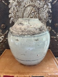This is an authentic antique ironstone pot sourced during my recent buying trip to England. I have been sourcing these wonderful antique pots for over 10 years from sources who are actually digging them up in ancient rubbish sites all over England. I purchased my first antique Advertising pot when my husband and I had the wonderful opportunity to live in England in the 1980’s. Our daughter was born there and we enjoyed living in England so much we often went back to visit after returning to the US.