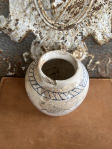Pots may contain crazing, spots of discoloration, hairline cracks and minor chips and fleabites that only add to its character and do not detract from its display value. These are expected due to age, use and being buried for decades and then being dug up and rescued.