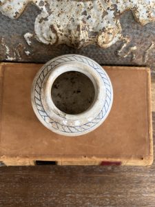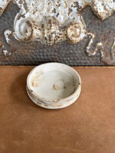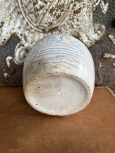 This is an authentic antique ironstone pot sourced during my recent buying trip to England. I have been sourcing these wonderful antique pots for over 10 years from sources who are actually digging them up in ancient rubbish sites all over England. I purchased my first antique Advertising pot when my husband and I had the wonderful opportunity to live in England in the 1980’s. Our daughter was born there and we enjoyed living in England so much we often went back to visit after returning to the US.