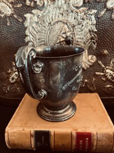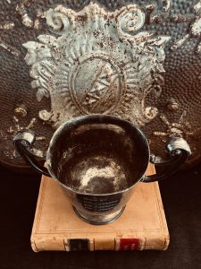 Measures Approximately: 6 1/2” to the top of the trophy handles x 9” handle to handle x 5” mouth.