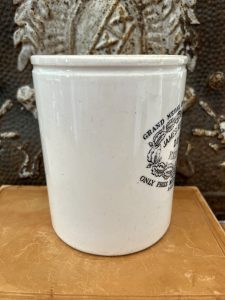 This pot was handmade in 1885 to store award-winning Marmalade. Most pots like this will likely contain crazing, varying spots of discoloration, minor hairline cracks and minor chips and fleabites which add to its character, and do not detract from its display value.