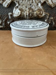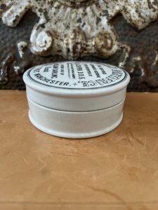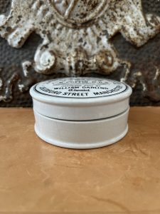 This listing is for an antique ironstone Dentrifice pot from Manchester. American Dentifrice was a tooth-cleaning compound made in the late 19th to early 20th century. “Dentifrice” is an old term for any substance used to clean teeth, typically powders before modern toothpaste tubes became common.