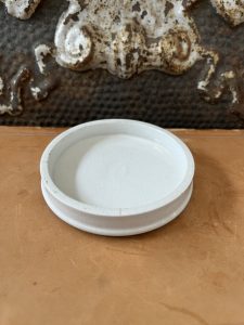 Measures approximately 3 1/4” wide across the lid, and 1 1/4” tall.