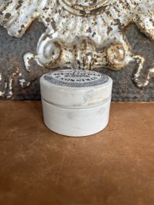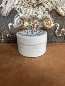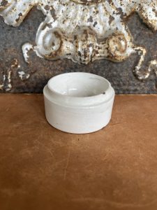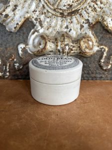 This is an authentic antique advertising pot sourced during my recent buying trip to England. I have been sourcing these wonderful antique pots for over 12 years from sources who are actually digging them up in ancient rubbish sites all over England. I purchased my first antique Advertising pot when my husband and I had the wonderful opportunity to live in England in the 1980’s. Our daughter was born there and we enjoyed living in England so much we often went back to visit after returning to the US.