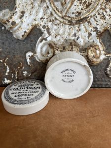 Antique Cold Cream. The manufacturer is – J. & E. Atkinson, a well-known London-based perfumery and cosmetics company. The pot reads: