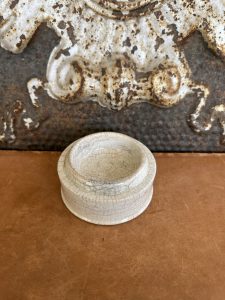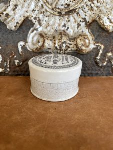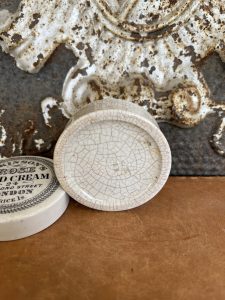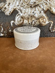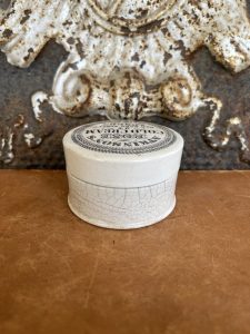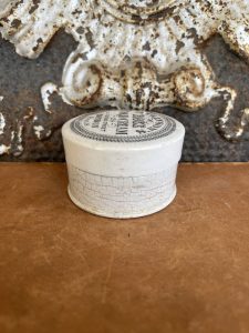 This is an authentic antique advertising pot sourced during my recent buying trip to England. I have been sourcing these wonderful antique pots for over 12 years from sources who are actually digging them up in ancient rubbish sites all over England. I purchased my first antique Advertising pot when my husband and I had the wonderful opportunity to live in England in the 1980’s. Our daughter was born there and we enjoyed living in England so much we often went back to visit after returning to the US.