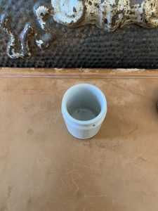 This is an authentic antique advertising pot sourced during my recent buying trip to England. I have been sourcing these wonderful antique pots for over 12 years from sources who are actually digging them up in ancient rubbish sites all over England. I purchased my first antique Advertising pot when my husband and I had the wonderful opportunity to live in England in the 1980’s. Our daughter was born there and we enjoyed living in England so much we often went back to visit after returning to the US.