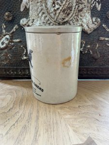 This is an authentic antique ironstone piece sourced during my recent buying trip to England. I have been sourcing these wonderful antique pots for over 12 years from friends who are actually digging them up in ancient rubbish sites all over England. I purchased my first antique Advertising pot when my husband and I had the wonderful opportunity to live in England in the 1980’s. Our daughter was born there and we enjoyed living in England so much we often went back to visit after returning to the US.