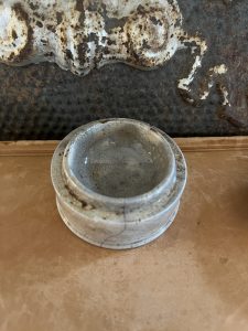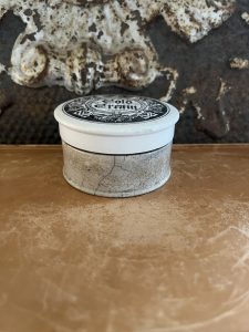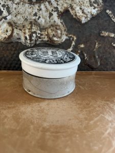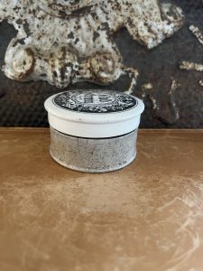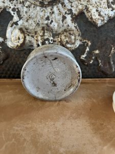 This is an authentic antique advertising pot sourced during my recent buying trip to England. I have been sourcing these wonderful antique pots for over 12 years from sources who are actually digging them up in ancient rubbish sites all over England. I purchased my first antique Advertising pot when my husband and I had the wonderful opportunity to live in England in the 1980’s. Our daughter was born there and we enjoyed living in England so much we often went back to visit after returning to the US.