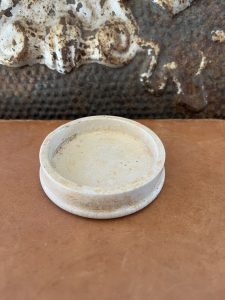 This is an authentic antique advertising pot sourced during my recent buying trip to England. I have been sourcing these wonderful antique pots for over 12 years from friends who are actually digging them up in ancient rubbish sites all over England. I purchased my first antique Advertising pot when my husband and I had the wonderful opportunity to live in England in the 1980’s. Our daughter was born there and we enjoyed living in England so much we often went back to visit after returning to the US.