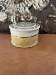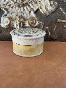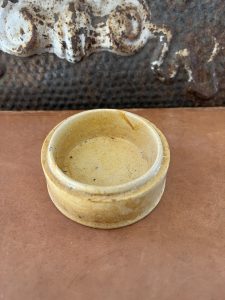 This is an authentic antique advertising pot sourced during my recent buying trip to England. I have been sourcing these wonderful antique pots for over 12 years from friends who are actually digging them up in ancient rubbish sites all over England. I purchased my first antique Advertising pot when my husband and I had the wonderful opportunity to live in England in the 1980’s. Our daughter was born there and we enjoyed living in England so much we often went back to visit after returning to the US.