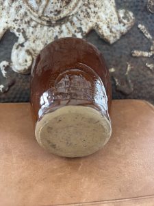 This charming embossed jar dates to the early 1900s and was originally used for cream or dairy products distributed by local creameries across southwest England. The rich amber/brown glass helped protect dairy contents from sunlight and was designed to be returned and reused by customers.