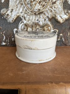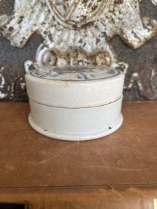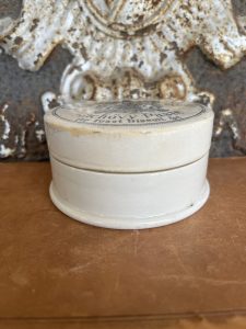 These are authentic antique advertising pot sourced during my recent buying trip to England. I have been sourcing these wonderful antique pots for over 12 years from friends who are actually digging them up in ancient rubbish sites all over England. I purchased my first antique Advertising pot when my husband and I had the wonderful opportunity to live in England in the 1980’s. Our daughter was born there and we enjoyed living in England so much we often went back to visit after returning to the US.