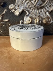 This listing is for one (1) Burgess’s Anchovy Paste Lidded Pot. These charming Antique English Advertising Pots date back to the late 1800’s and was the packaging of that eras prepared foods. This paste would have been eaten on toast or biscuits. The different crests represent different Kings.