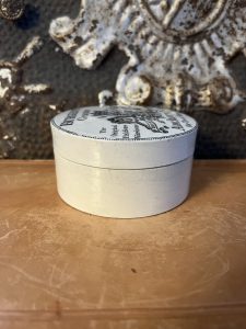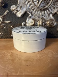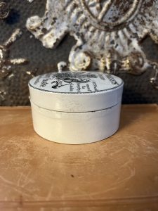 These are authentic antique advertising pot sourced during my recent buying trip to England. I have been sourcing these wonderful antique pots for over 12 years from friends who are actually digging them up in ancient rubbish sites all over England. I purchased my first antique Advertising pot when my husband and I had the wonderful opportunity to live in England in the 1980’s. Our daughter was born there and we enjoyed living in England so much we often went back to visit after returning to the US.