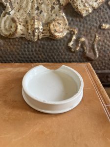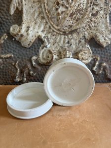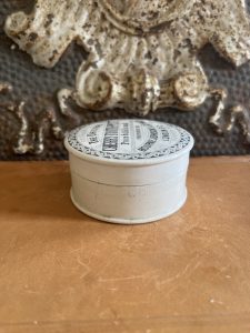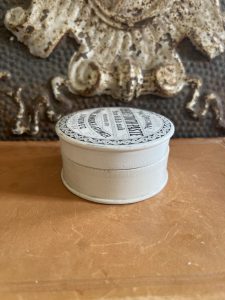 This authentic antique advertising pot was sourced during my recent buying trip to England. I have been sourcing these wonderful antique pots for over 12 years from friends who are actually digging them up in ancient rubbish sites all over England. I purchased my first antique Advertising pot when my husband and I had the wonderful opportunity to live in England in the 1980’s. Our daughter was born there and we enjoyed living in England so much we often went back to visit after returning to the US.