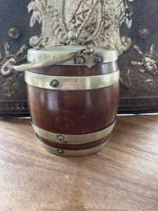 These barrels became fashionable during the Victorian period, when taking tea with biscuits (cookies in the U.S.) became a social ritual. The jar was kept on the tea table and used to serve biscuits to guests during afternoon tea. I just acquired this lovely piece during my recent buying trip in England.