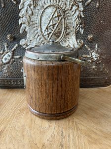 These barrels became fashionable during the Victorian period, when taking tea with biscuits (cookies in the U.S.) became a social ritual. The jar was kept on the tea table and used to serve biscuits to guests during afternoon tea. I just acquired this lovely piece during my recent buying trip in England.