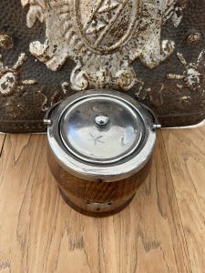 The Biscuit Barrel measures approx 6 1/4” tall with Lid x 5 1/2” diameter wide x 4” mouth opening.