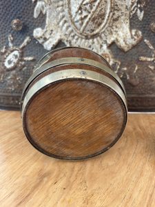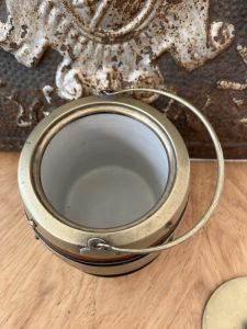 The Biscuit Barrel measures approx 6 1/4” tall with Lid x 5” diameter wide x 4” mouth opening.