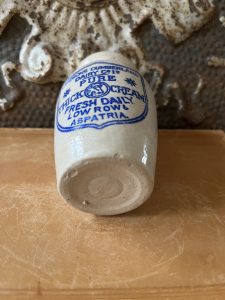 Such dairies bottled cream in small, heavy ceramic pots before the widespread adoption of glass bottles and later cartons. Customers would buy these filled with thick cream, and the pots were sometimes returned to the dairy for reuse, though many were simply kept or discarded.