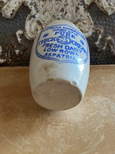 Such dairies bottled cream in small, heavy ceramic pots before the widespread adoption of glass bottles and later cartons. Customers would buy these filled with thick cream, and the pots were sometimes returned to the dairy for reuse, though many were simply kept or discarded.