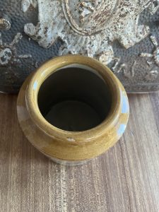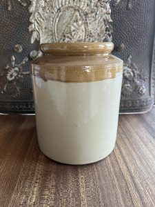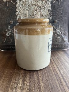 This is an authentic antique advertising pot sourced during my recent buying trip to England. I have been sourcing these wonderful antique pots for over 12 years from sources who are actually digging them up in ancient rubbish sites all over England. I purchased my first antique Advertising pot when my husband and I had the wonderful opportunity to live in England in the 1980’s. Our daughter was born there and we enjoyed living in England so much we often went back to visit after returning to the US.