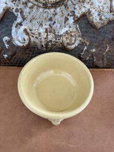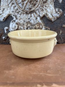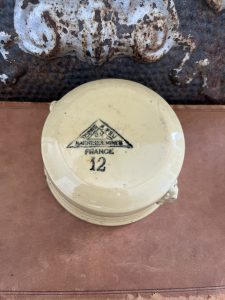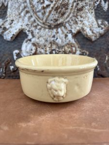 This is an authentic antique advertising pot sourced during my recent buying trip to England. I have been sourcing these wonderful antique pots for over 10 years from sources who are actually digging them up in ancient rubbish sites all over England. I purchased my first antique Advertising pot when my husband and I had the wonderful opportunity to live in England in the 1980’s. Our daughter was born there and we enjoyed living in England so much we often went back to visit after returning to the US.