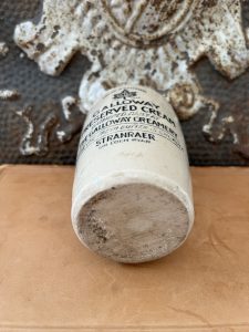 This is an authentic antique advertising pot sourced during my recent buying trip to England. I have been sourcing these wonderful antique pots for over 12 years from friends who are actually digging them up in ancient rubbish sites all over England. I purchased my first antique Advertising pot when my husband and I had the wonderful opportunity to live in England in the 1980’s. Our daughter was born there and we enjoyed living in England so much we often went back to visit after returning to the US.