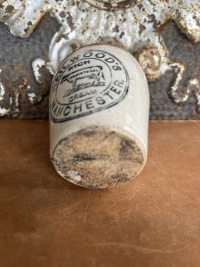 Hailwood’s was a well-known Manchester-based dairy company in the late 19th and early 20th centuries. They specialized in selling rich cream and other dairy products, which were distributed in distinctive stoneware jars like this one. Stoneware was commonly used because it was durable and helped preserve dairy products before the widespread use of glass bottles and refrigeration.