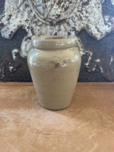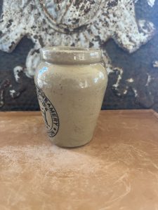 This is an authentic antique advertising pot sourced during my recent buying trip to England. I have been sourcing these wonderful antique pots for over 12 years from sources who are actually digging them up in ancient rubbish sites all over England. I purchased my first antique Advertising pot when my husband and I had the wonderful opportunity to live in England in the 1980’s. Our daughter was born there and we enjoyed living in England so much we often went back to visit after returning to the US.