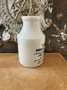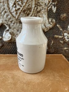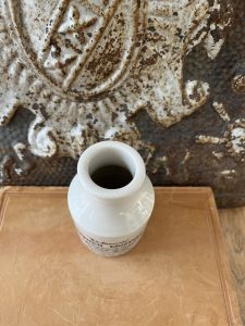This is an authentic antique advertising pot sourced during my recent buying trip to England. I have been sourcing these wonderful antique pots for over 12 years from sources who are actually digging them up in ancient rubbish sites all over England. I purchased my first antique Advertising pot when my husband and I had the wonderful opportunity to live in England in the 1980’s. Our daughter was born there and we enjoyed living in England so much we often went back to visit after returning to the US.