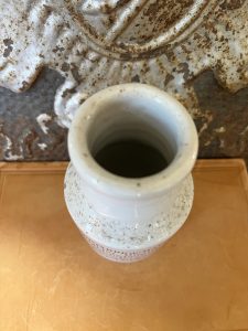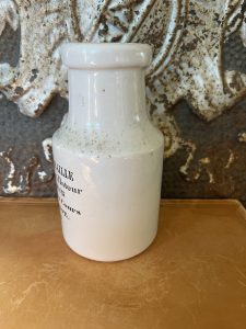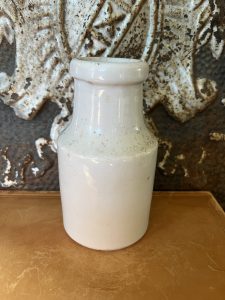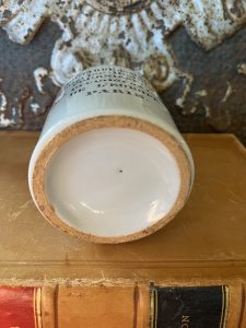This is an authentic antique advertising pot sourced during my recent buying trip to England. I have been sourcing these wonderful antique pots for over 12 years from sources who are actually digging them up in ancient rubbish sites all over England. I purchased my first antique Advertising pot when my husband and I had the wonderful opportunity to live in England in the 1980’s. Our daughter was born there and we enjoyed living in England so much we often went back to visit after returning to the US.