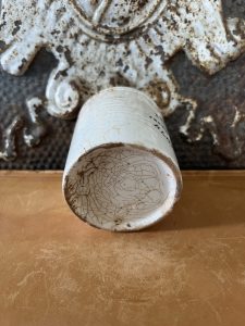 This is an authentic antique advertising pot sourced during my recent buying trip to England. I have been sourcing these wonderful antique pots for over 12 years from sources who are actually digging them up in ancient rubbish sites all over England. I purchased my first antique Advertising pot when my husband and I had the wonderful opportunity to live in England in the 1980’s. Our daughter was born there and we enjoyed living in England so much we often went back to visit after returning to the US.
