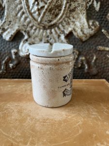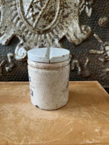 These are authentic antique advertising pots sourced during my recent buying trip to England. I have been sourcing these wonderful antique pots for over 12 years from sources who are actually digging them up in ancient rubbish sites all over England. I purchased my first antique Advertising pot when my husband and I had the wonderful opportunity to live in England in the 1980’s. Our daughter was born there and we enjoyed living in England so much we often went back to visit after returning to the US.