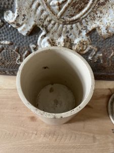 These are authentic antique advertising pots sourced during my recent buying trip to England. I have been sourcing these wonderful antique pots for over 12 years from people who are actually digging them up in ancient rubbish sites all over England. I purchased my first antique Advertising pot when my husband and I had the wonderful opportunity to live in England in the 1980’s. Our daughter was born there and we enjoyed living in England so much we often went back to visit after returning to the US.