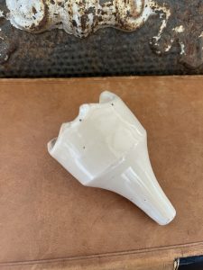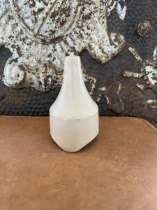 Offering this larger antique English Ironstone Pie Funnel from the early 1900’s. The color is creamy white. There is a manufacturing defect on the bottom that actually looks like