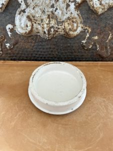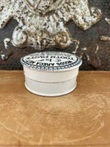 This authentic English antique advertising pot was sourced during my recent buying trip to England. I have been sourcing these wonderful antique pots for over 12 years from sources who are actually digging them up in ancient rubbish sites all over England. I purchased my first antique Advertising pot when my husband and I had the wonderful opportunity to live in England in the 1980’s. Our daughter was born there and we enjoyed living in England so much we often went back to visit after returning to the US.