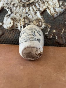 These are all authentic antique advertising pots sourced during my recent buying trip to England. I have been sourcing these wonderful antique pots for over 12 years from friends who are actually digging them up in ancient rubbish sites all over England. I purchased my first antique Advertising pot when my husband and I had the wonderful opportunity to live in England in the 1980’s. Our daughter was born there and we enjoyed living in England so much we often went back to visit after returning to the US.