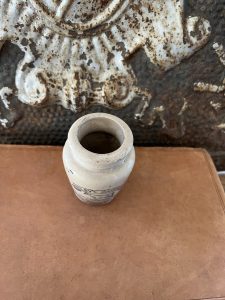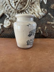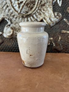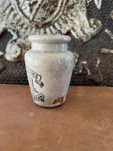 These are all authentic antique advertising pots sourced during my recent buying trip to England. I have been sourcing these wonderful antique pots for over 12 years from friends who are actually digging them up in ancient rubbish sites all over England. I purchased my first antique Advertising pot when my husband and I had the wonderful opportunity to live in England in the 1980’s. Our daughter was born there and we enjoyed living in England so much we often went back to visit after returning to the US.