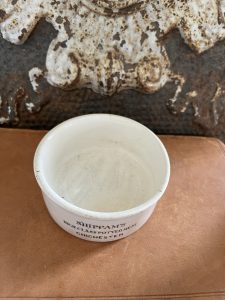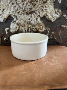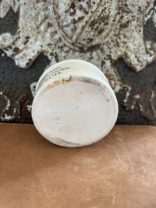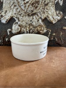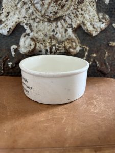 This is an authentic antique advertising pot sourced during my recent buying trip to England. I have been sourcing these wonderful antique pots for over 12 years from sources who are actually digging them up in ancient rubbish sites all over England. I purchased my first antique Advertising pot when my husband and I had the wonderful opportunity to live in England in the 1980’s. Our daughter was born there and we enjoyed living in England so much we often went back to visit after returning to the US.