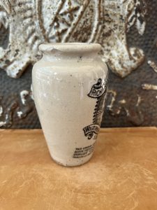 These authentic antique advertising pots were sourced during my recent buying trip to England. I have been sourcing these wonderful antique pots for over 12 years from sources who are actually digging them up in ancient rubbish sites all over England.