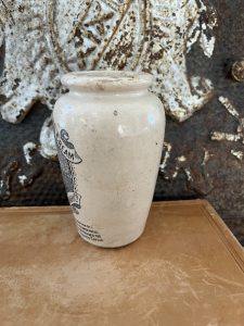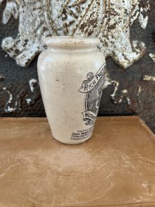 These authentic antique advertising pots were sourced during my recent buying trip to England. I have been sourcing these wonderful antique pots for over 12 years from sources who are actually digging them up in ancient rubbish sites all over England.