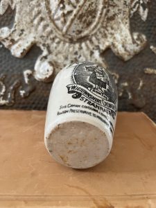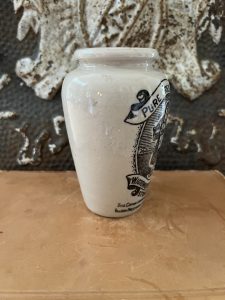 I purchased my first antique Advertising pot when my husband and I had the wonderful opportunity to live in England in the 1980’s. Our daughter was born there and we enjoyed living in England so much we often went back to visit after returning to the US.