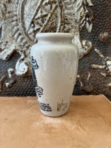I purchased my first antique Advertising pot when my husband and I had the wonderful opportunity to live in England in the 1980’s. Our daughter was born there and we enjoyed living in England so much we often went back to visit after returning to the US.