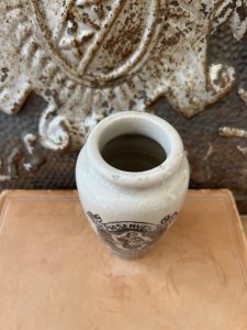 These authentic antique advertising pots were sourced during my recent buying trip to England. I have been sourcing these wonderful antique pots for over 12 years from sources who are actually digging them up in ancient rubbish sites all over England.