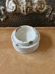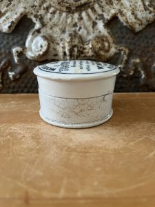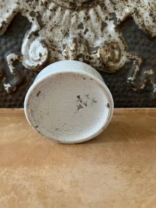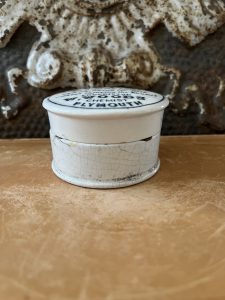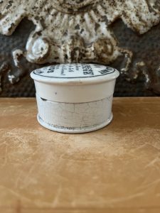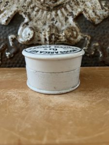 This authentic English antique advertising pot was sourced during my recent buying trip to England. I have been sourcing these wonderful antique pots for over 12 years from sources who are actually digging them up in ancient rubbish sites all over England. I purchased my first antique Advertising pot when my husband and I had the wonderful opportunity to live in England in the 1980’s. Our daughter was born there and we enjoyed living in England so much we often went back to visit after returning to the US.