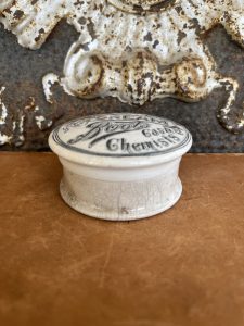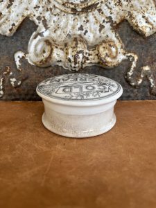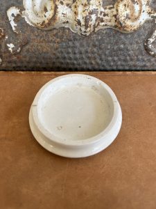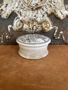 This is an authentic antique advertising pots sourced during my recent buying trip to England. I have been sourcing these wonderful antique pots for over 12 years from friends who are actually digging them up in ancient rubbish sites all over England. I purchased my first antique Advertising pot when my husband and I had the wonderful opportunity to live in England in the 1980’s. Our daughter was born there and we enjoyed living in England so much we often went back to visit after returning to the US.