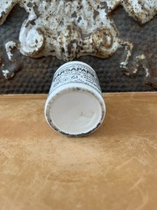 This is an authentic antique advertising pot sourced during my recent buying trip to England. I have been sourcing these wonderful antique pots for over 10 years from sources who are actually digging them up in ancient rubbish sites all over England. I purchased my first antique Advertising pot when my husband and I had the wonderful opportunity to live in England in the 1980’s. Our daughter was born there and we enjoyed living in England so much we often went back to visit after returning to the US.