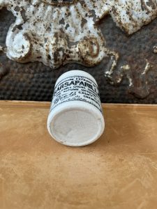 This is an authentic antique advertising pot sourced during my recent buying trip to England. I have been sourcing these wonderful antique pots for over 10 years from sources who are actually digging them up in ancient rubbish sites all over England. I purchased my first antique Advertising pot when my husband and I had the wonderful opportunity to live in England in the 1980’s. Our daughter was born there and we enjoyed living in England so much we often went back to visit after returning to the US.